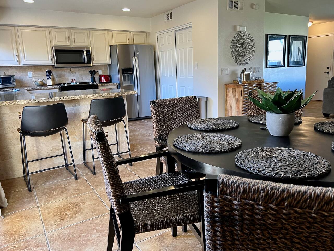 Check-in starts at 3 pm, with self-guided entry using an access code provided at least 1 day before arrival. Park your car near the patio, which is also the entrance. Find keys for the front door and community pool on the dining table. Enjoy 2 reserved covered parking spots during your stay.